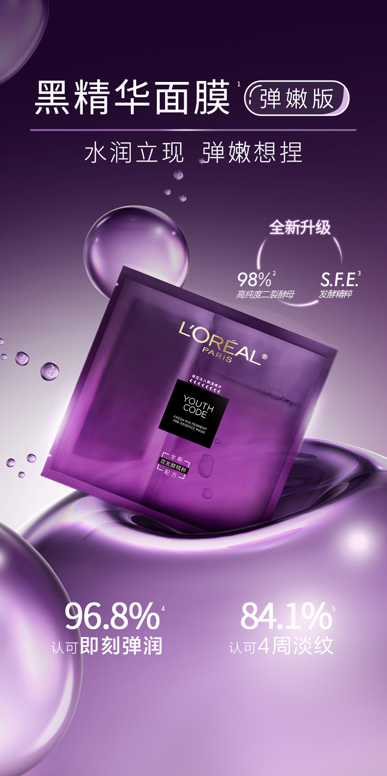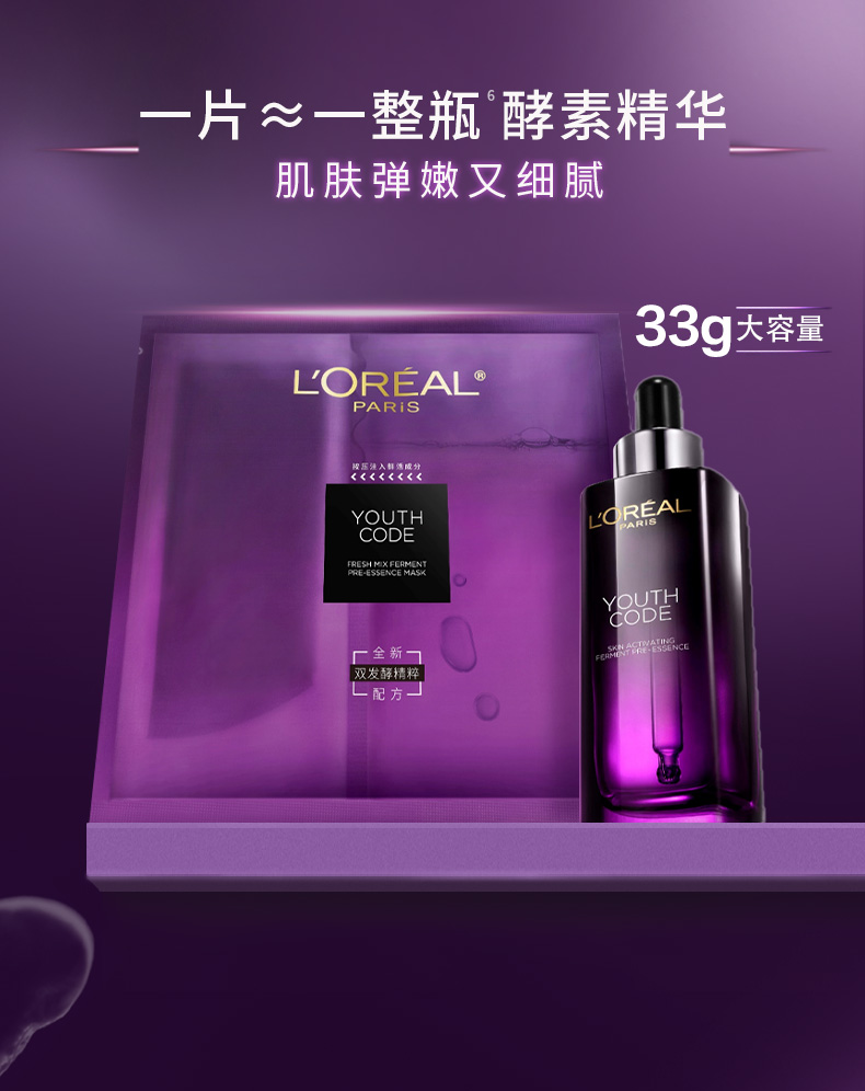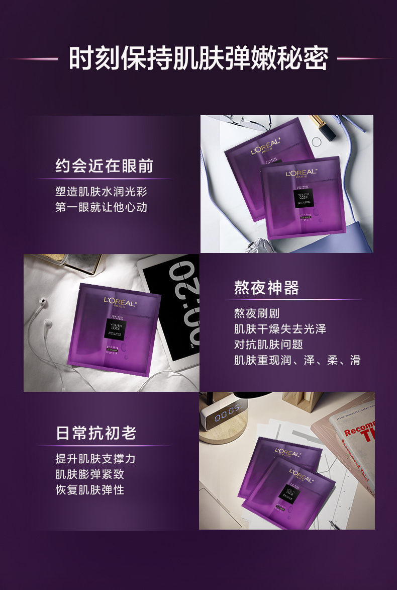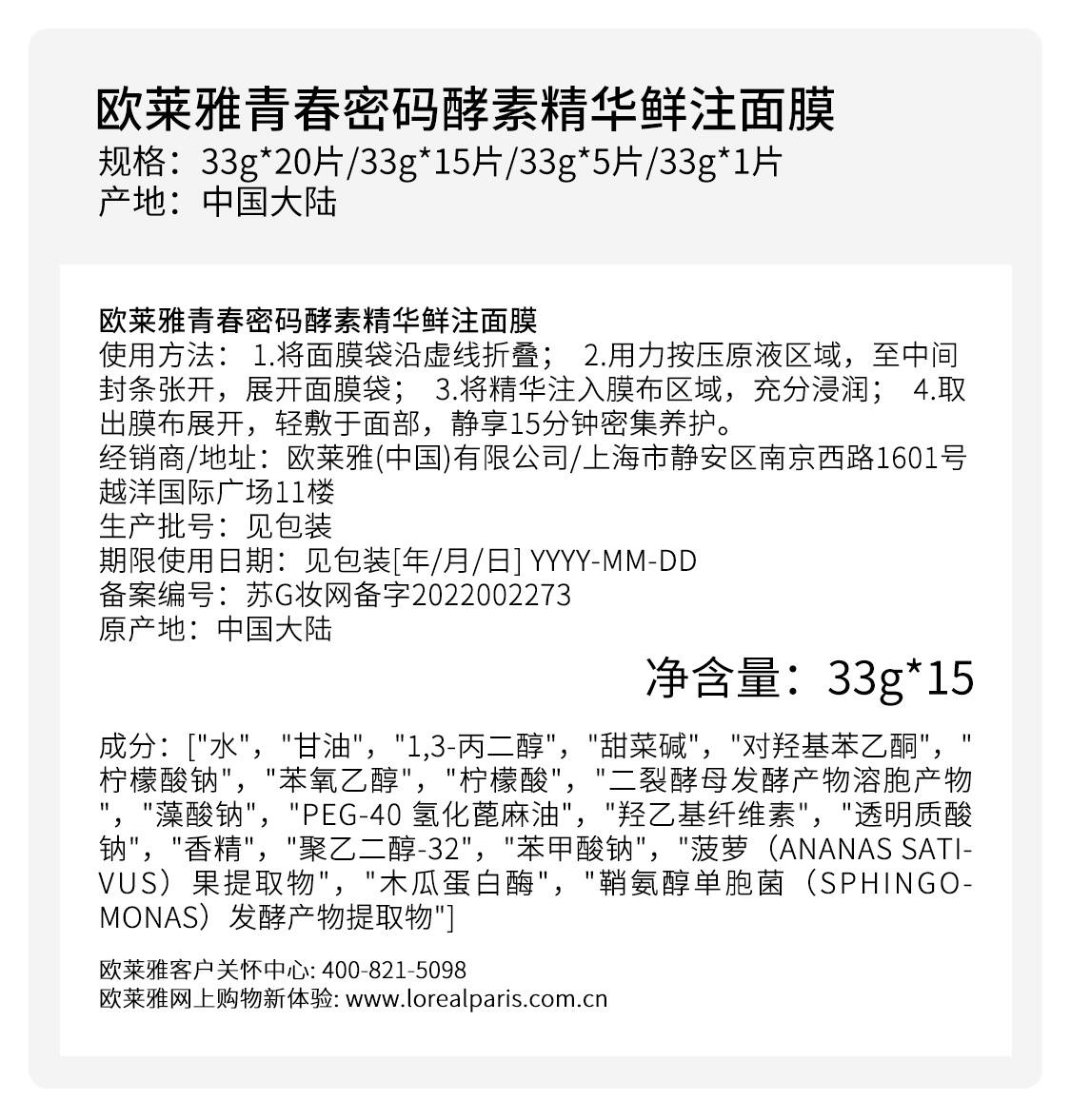 欧莱雅黑精华面膜青春密码酵素补水保湿抗初老肌底液滋润面膜女