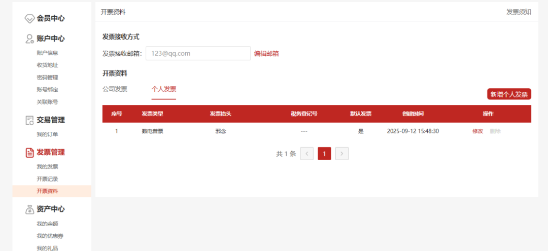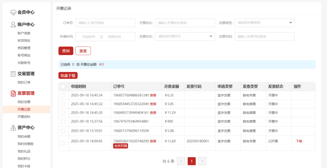 导出明细:一键导出所有商城订单开票明细,方便对账。